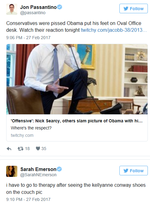 The photo of KelleAnne Conway, who is President Trump’s senior adviser, which showed her sitting on the oval office couch with her shoes as black college presidents visited the white house, has sparked controversy online.
